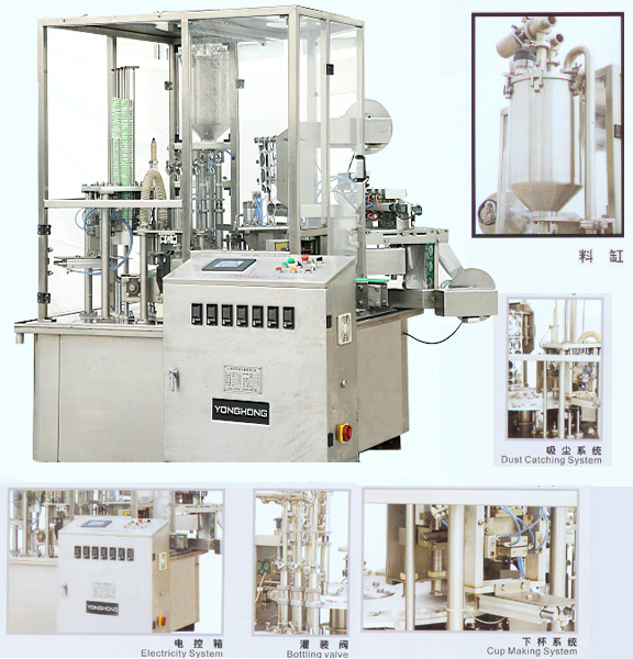 本機器是專(zhuān)為紙杯、塑料杯而設計的灌裝封口機,集機械手下杯、頂杯灌裝、制蓋、封口、卷邊等為一體的自動(dòng)化設備,可灌裝果粒,采用進(jìn)口氣動(dòng)原件,人機界面控制,具有占地面積小、自動(dòng)化程度高等優(yōu)點(diǎn)。